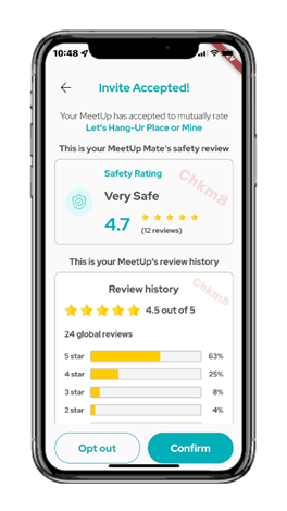 Your ratings can be shared to assure future MeetUps–confirming you are who you say you are and creating confidence and trust on both sides.